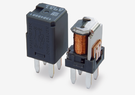 플러그인 릴레이 중 가장 소형화된 울트라 마이크로 타입입니다. 1 Form A 접점에 Standard 20A 정격 전류를 지원하며, 헤드램프 워셔, 스타터, 쿨링펌프 등에 사용됩니다.